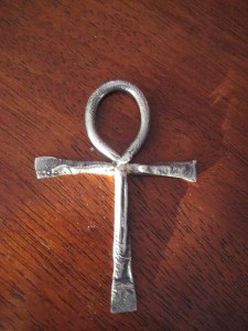The second piece is a pendant for Robyn, who loves all things Egyptian. The design is conceived in the vein of the ‘ankh’, the symbol or ‘key’ of eternal life. Historically, the Egyptians invariably crafted this item in gold rather than silver, but with gold prices the dizzy heights they are at the moment, silver it is! I also wanted this item to look old and ‘mummified’ – without the reticulation the original pendant looked a little too fresh. The leather thong also suits it better that the snake chain I had initially paired it with.