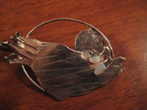 The first is a brooch for Ree in honour of her Dad who, as well as being a top salt-of-the-earth bloke and an outstanding vegie grower, was also a keen opal miner at White Cliffs. He died last year in July and Ree was keen to commemorate him with an abstract design that included a couple of the opals he had mined.