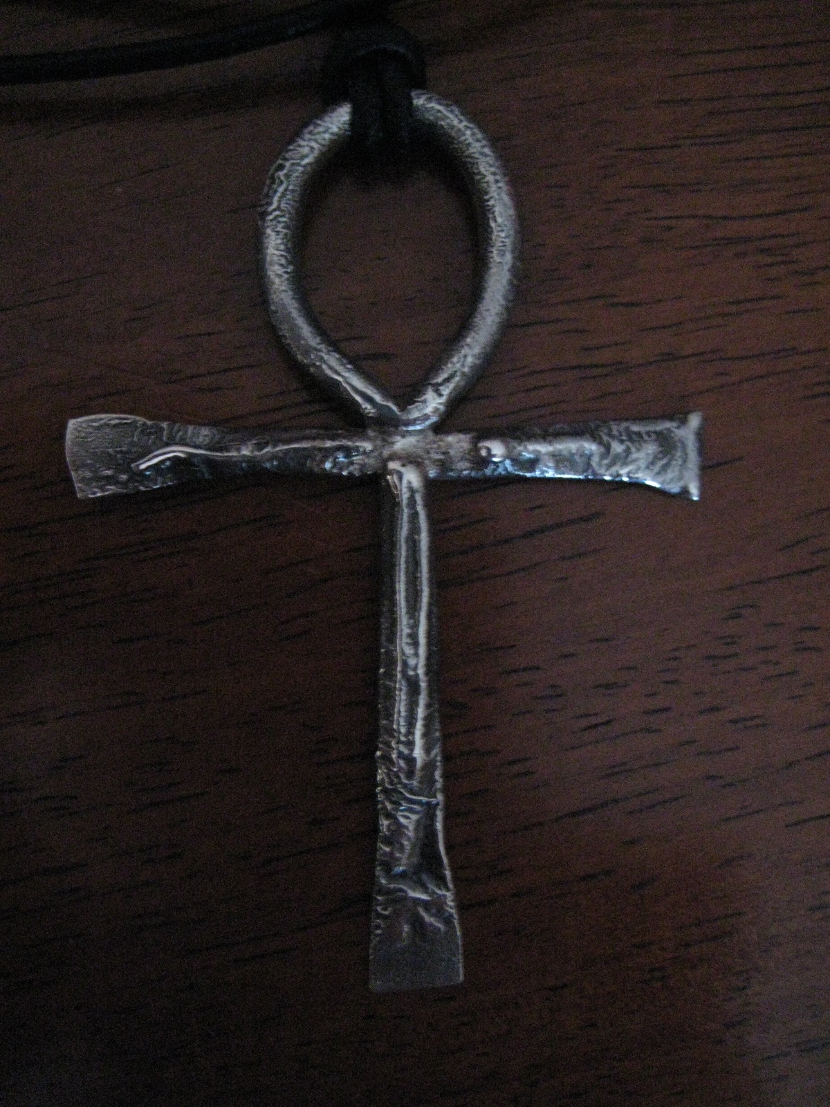 The second piece is a pendant for Robyn, who loves all things Egyptian. The design is conceived in the vein of the ‘ankh’, the symbol or ‘key’ of eternal life. Historically, the Egyptians invariably crafted this item in gold rather than silver, but with gold prices the dizzy heights they are at the moment, silver it is! I also wanted this item to look old and ‘mummified’ – without the reticulation the original pendant looked a little too fresh. The leather thong also suits it better that the snake chain I had initially paired it with.