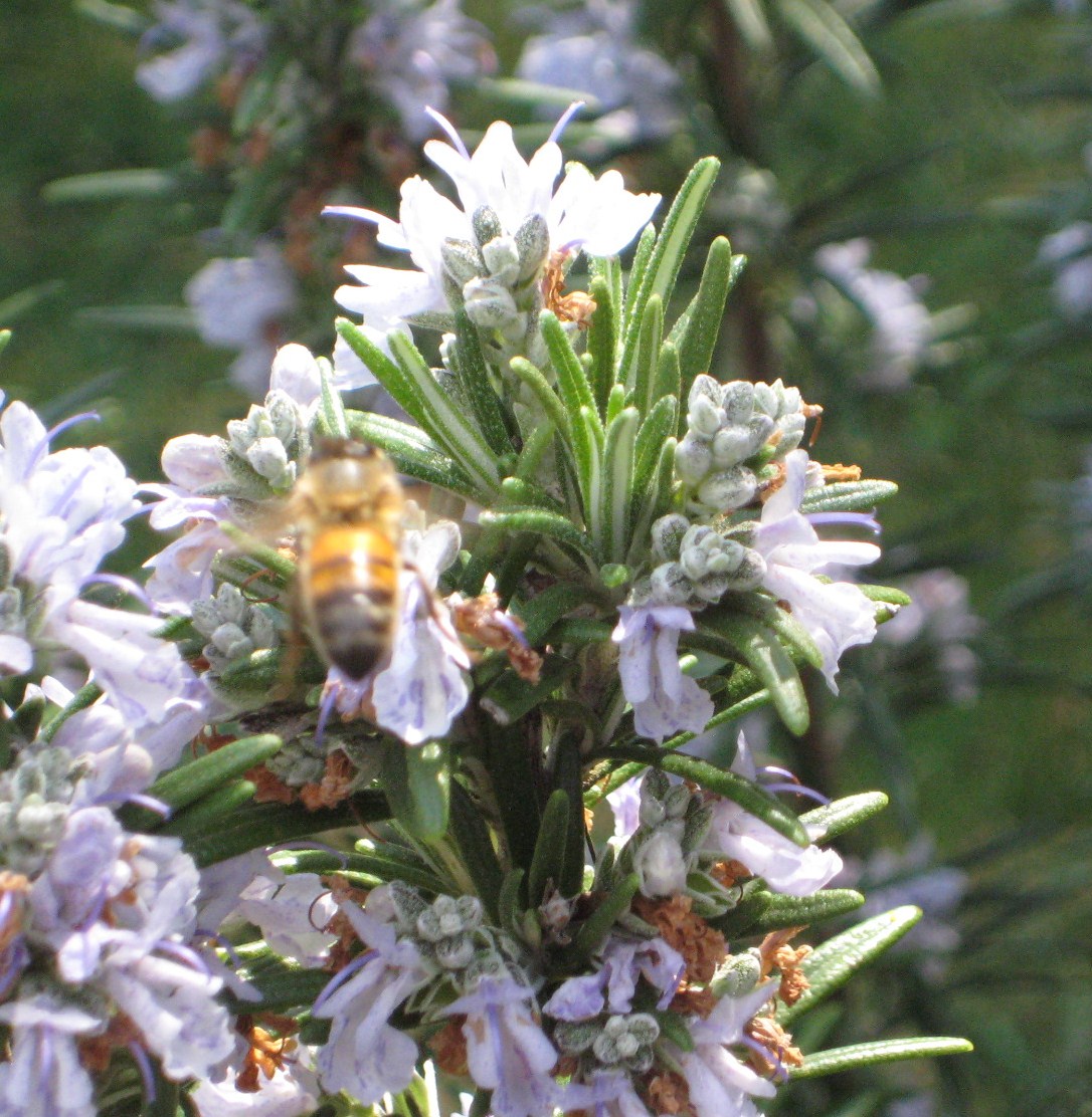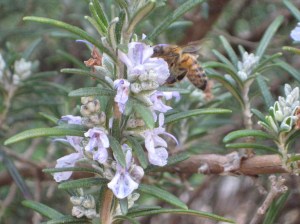 Bees busy at work on the rosemary flowers. Someone must have said, “Oi! It’s September the 1st!” because they just turned up on cue.