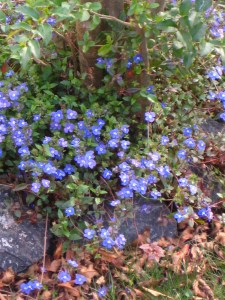 Last autumn’s privet leaves and spring’s lobelia.