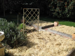 On Sunday I turned earth like there was no tomorrow, fertilized and spread straw. The straw is great mulch as it insulates growing seedlings, keeps in the moisture (even through last summer’s heat waves) and has the added bonus of being a wonderful deterrent for cats wanting to use the garden as a giant ensuite.