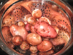 I’ve just dug the first harvest of spuds for the season…these are from two plants I only pulled up because they looked so mangey! If this little crop is anything to go by we’ll be eating spuds on a daily basis.
