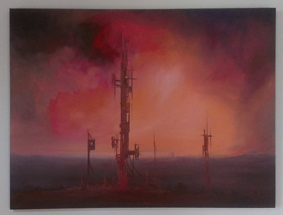 a few weeks ago, at long, long last, i opened the very last box i’d brought over from australia. in this box was the large oil painting by ken raffe towers in the future [or towers of the future, depending on different sources, including the artist himself – so we shall affectionately name it the towers from here on in].