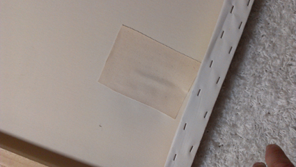 there is a massive tear – 5 inches long – in the canvas, along with a stretch that tells me something heavy has leant on it for a long time.