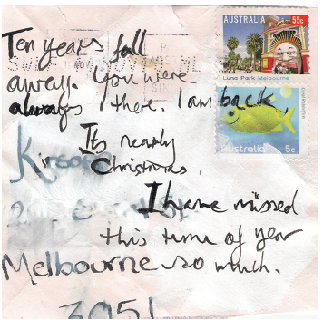 Anyway, the post got me to thinking that, for almost 20 years I’d kept every letter that my school friends had written and secreted to me. I posted about these letters a couple of years ago, when the collaborative project Disinflection was in motion. I’m sad to say, these letters had to be jettisoned when I moved from Australia to Italy.