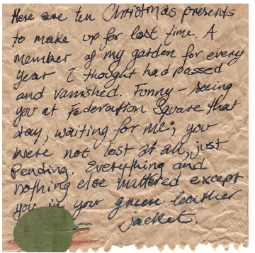 Reading back on the pages, in the last two years I’m intrigued by how things have changed. Not just the big, dramatic stuff but the little stuff – what was important to us in our lives at that time. The monotonies, the day-to-day frivolities. The need for change that was already afoot for both of us, whether we knew it or not. That’s what I miss about finding letters, I think.
