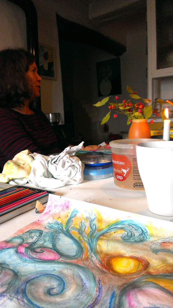 For a number of months now, I’ve been attending Christine Person’s Vedic Art classes, just down the road in the gorgeous Tuscan town of Montegiovi.