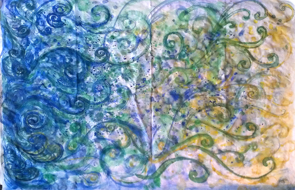 I remember in my early childhood drawing and painting in this way – our parents encouraged it. In recent years I’ve returned to this way of being (both in art and poetry) not necessarily shedding what I’ve learnt elsewhere, but rather integrating this into my practice. My school years in between taught me technique, observation, how to draw (and write) and while I applaud this and use this every day of my life, the academic element also taught me that there was a right and wrong way to make art and that you ‘learned from mistakes’ by practicing. Vedic Art, on the other hand, isn’t concerned about mistakes – simply because they don’t exist.