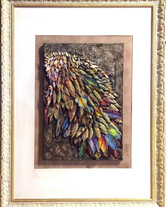 The Wing below is made from old lino printing plates, aluminium lithography plates, plastic, recycled paper.