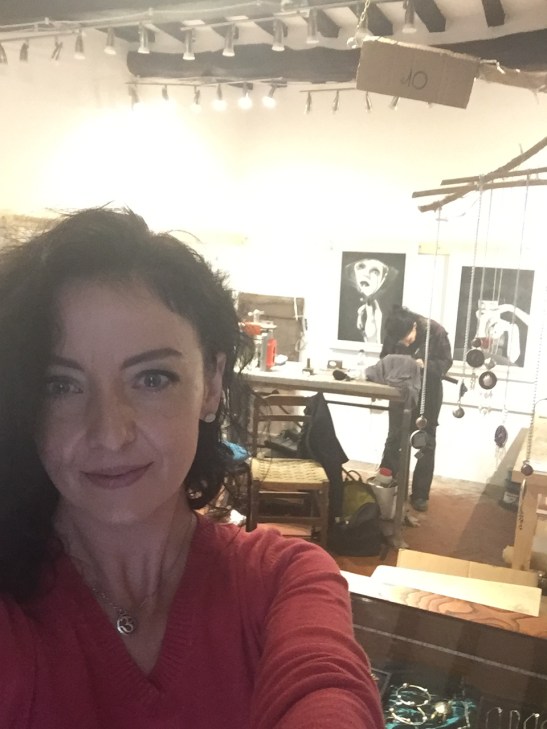 I work with fellow artist and jewellery maker, Monika Martellini, in a studio in the medieval centre of Santa Fiora, in Southern Tuscany. It’s light and airy, and the artificial lighting is all LED. It’s spacious enough for the jewellery work, but both of us paint at home mainly due to restrictions in space and of course the dust.
