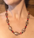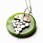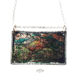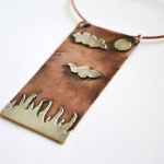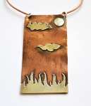Hand painted Copper and Sterling Silver etched necklace