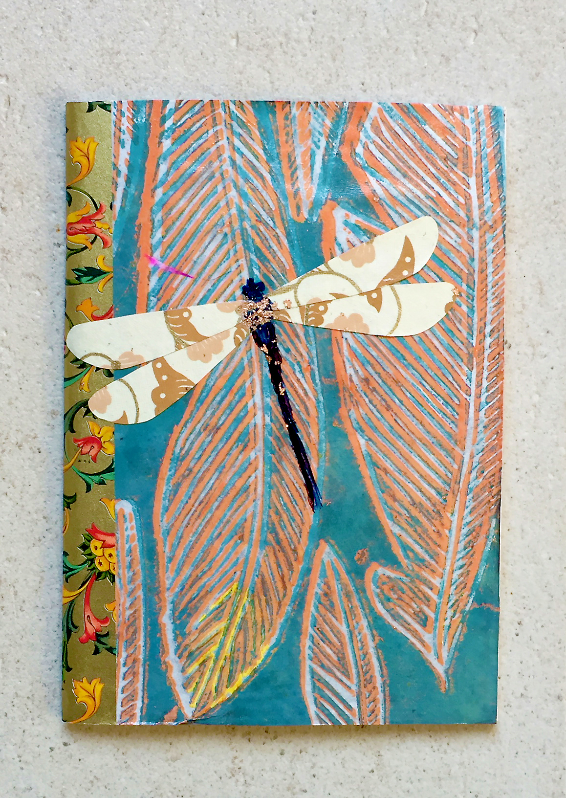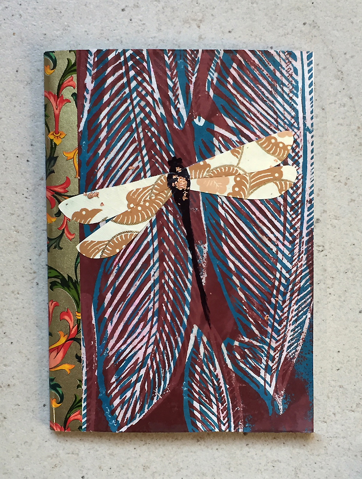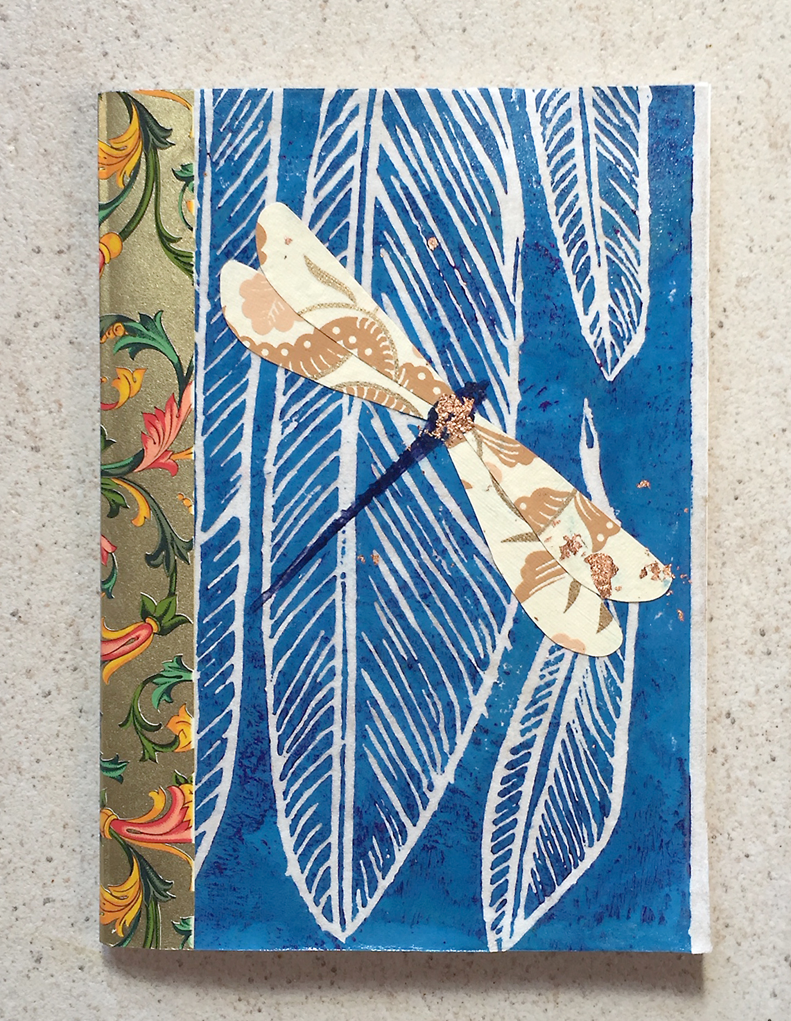 Below are the dragonfly collaged, lino printed dream journals that I currently have in stock.