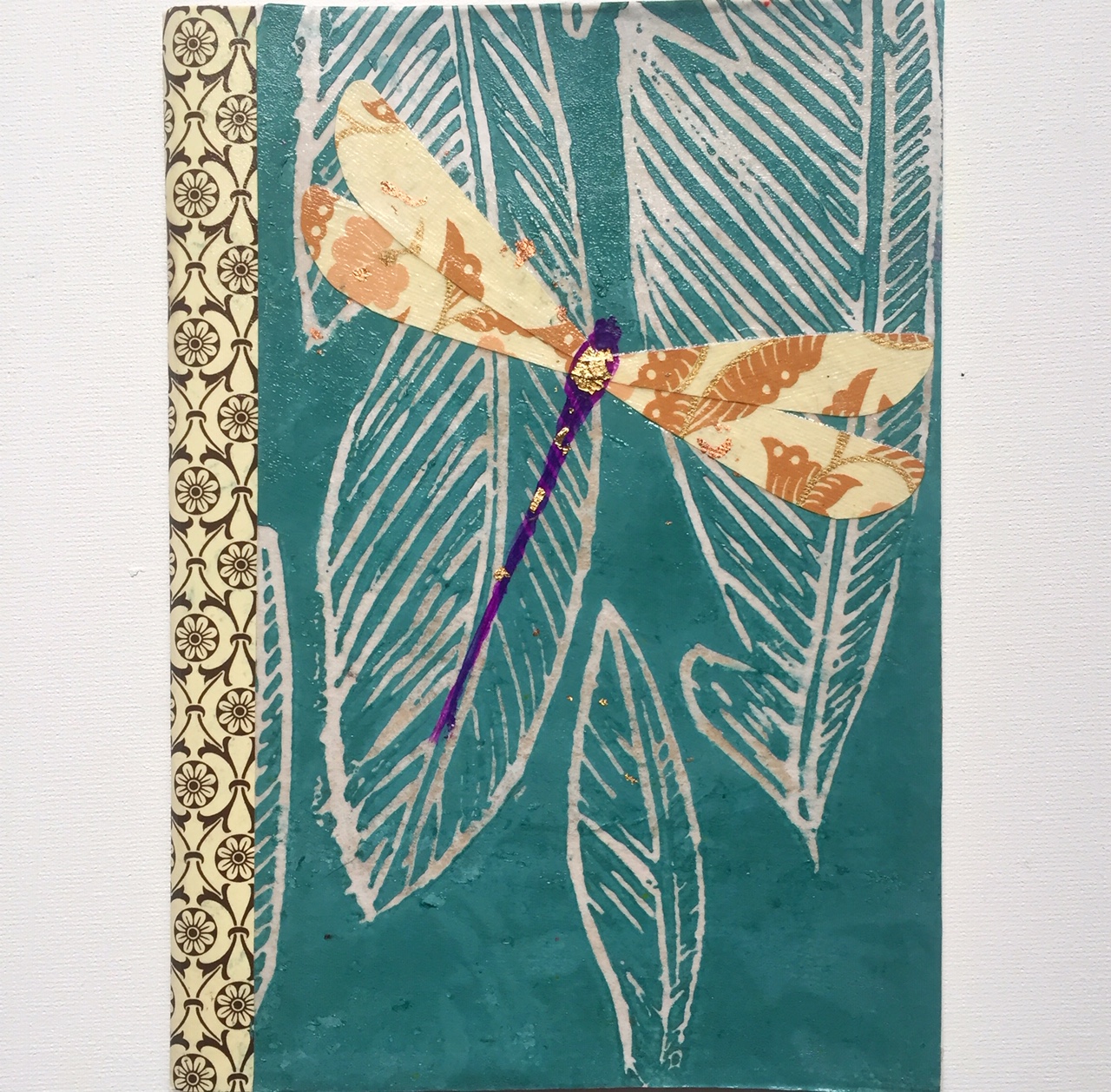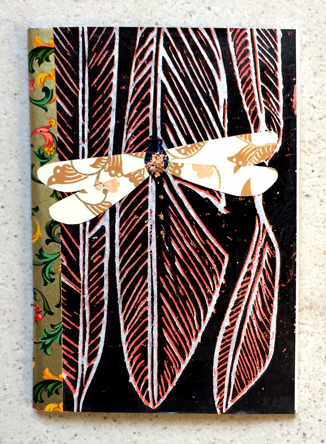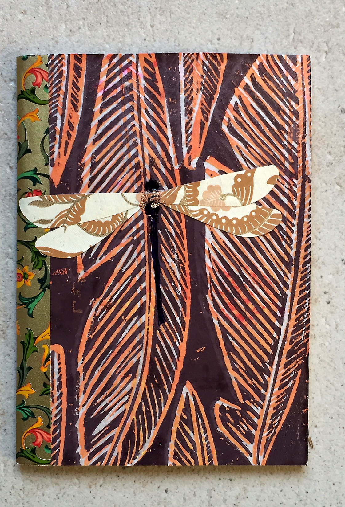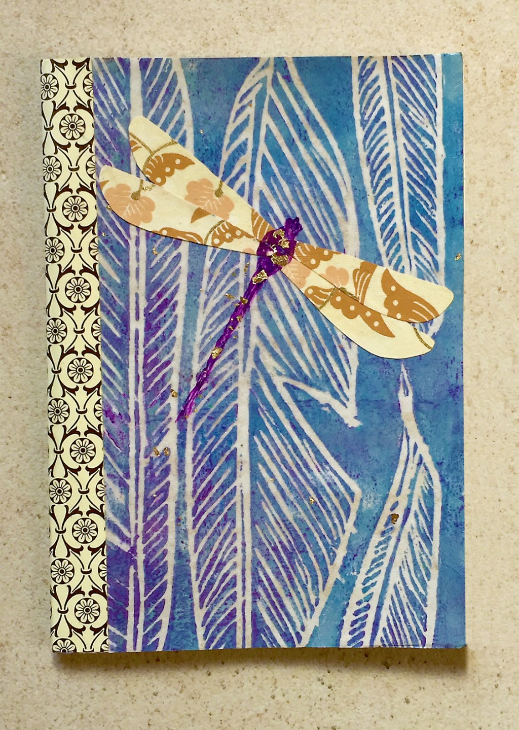 Below are the dragonfly collaged, lino printed dream journals that I currently have in stock.