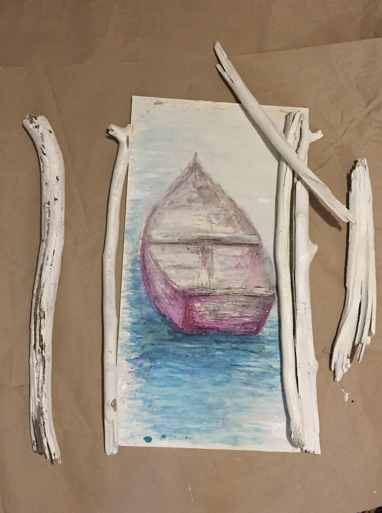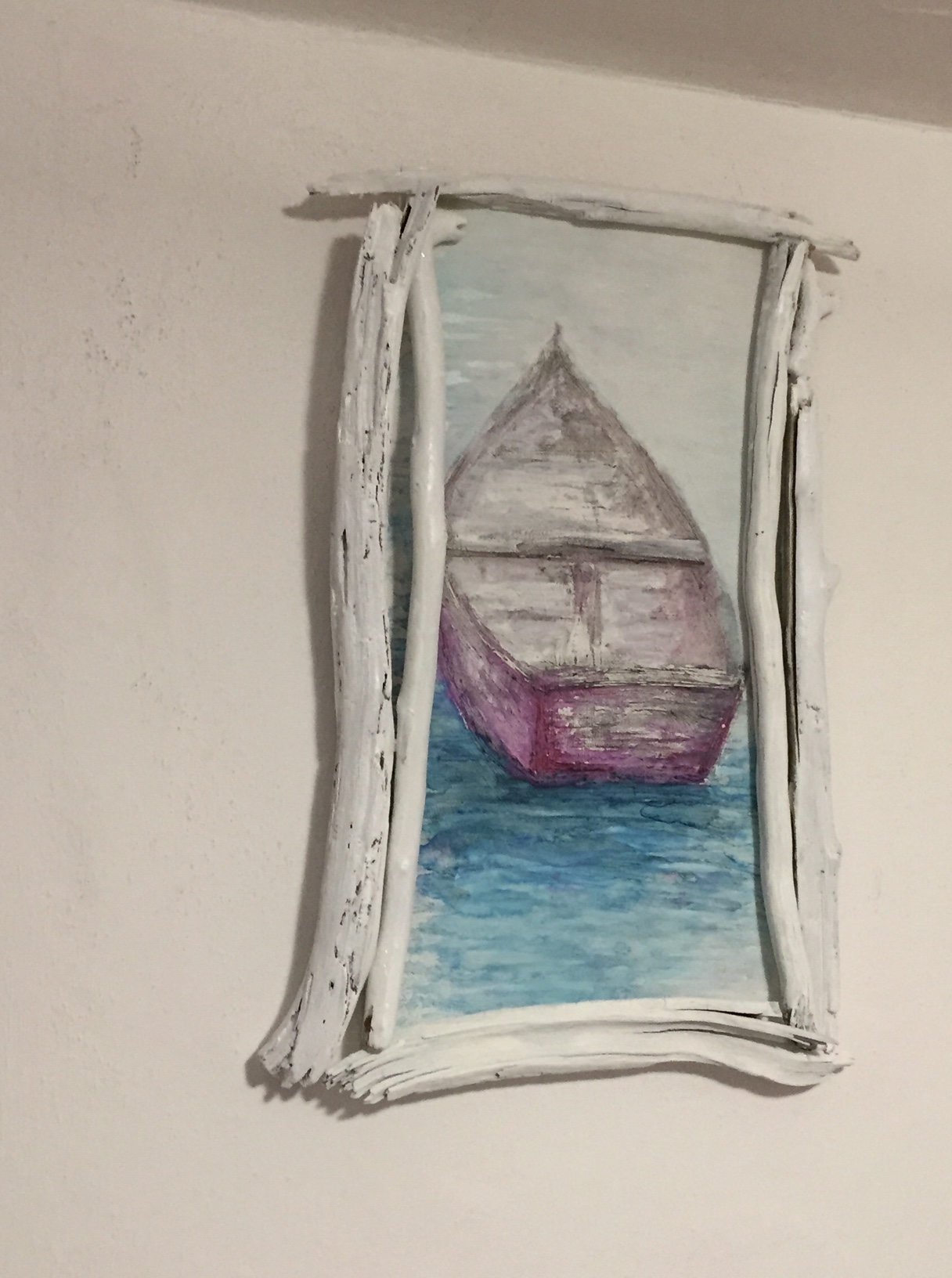 I’ve been reunited with the rest of my artworks, one of which was a little worse for wear. I’ve repaired it and touched up and it’s nice to have them in this little home and sanctuary of mine, along with the current Works In Progress and other projects.