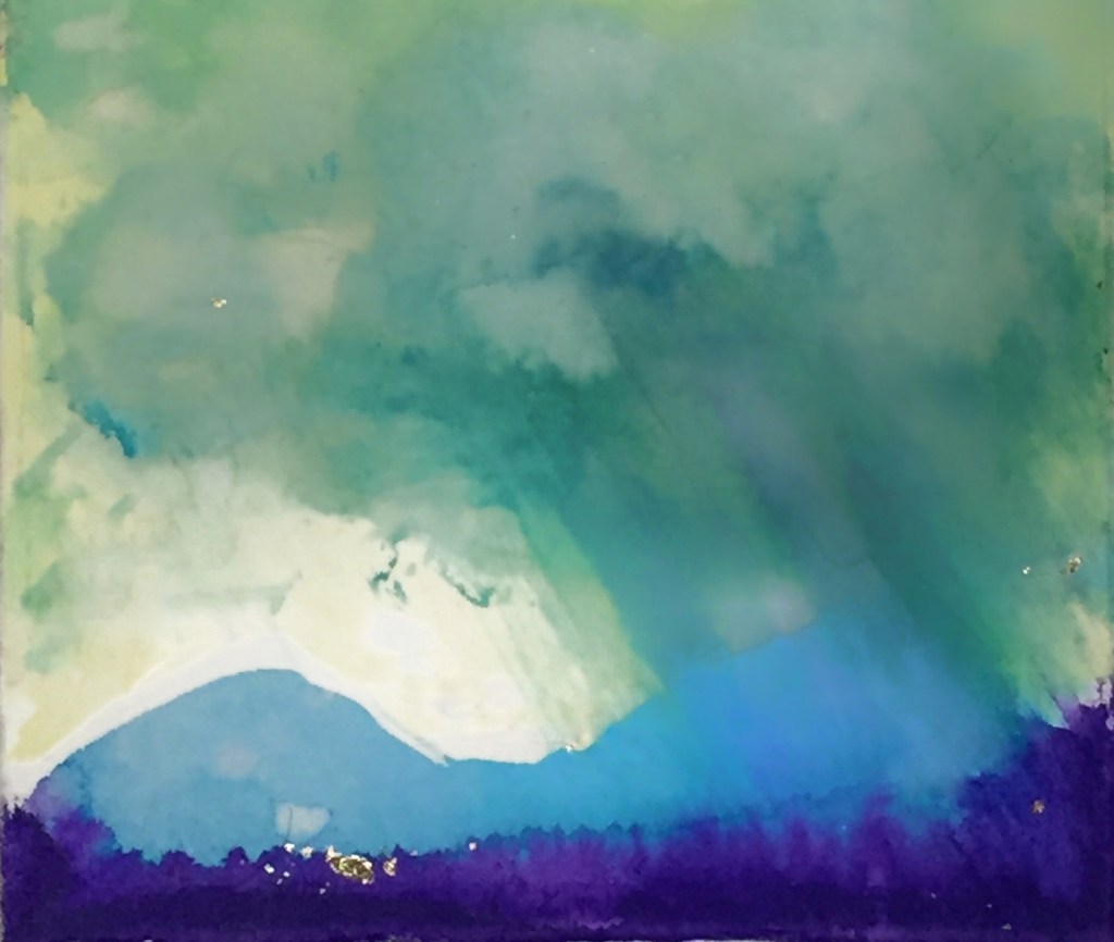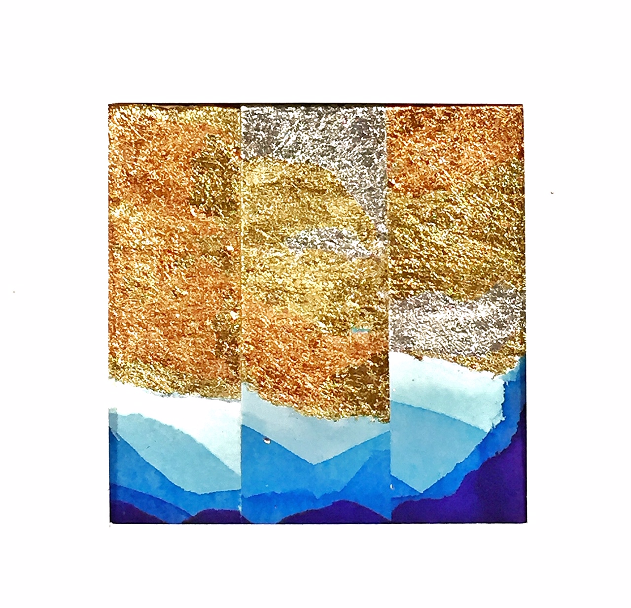 Ink, metal leaf, watercolour on paper