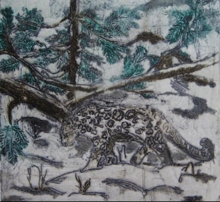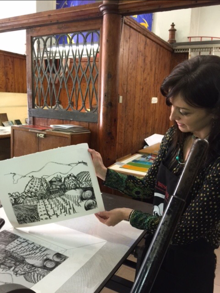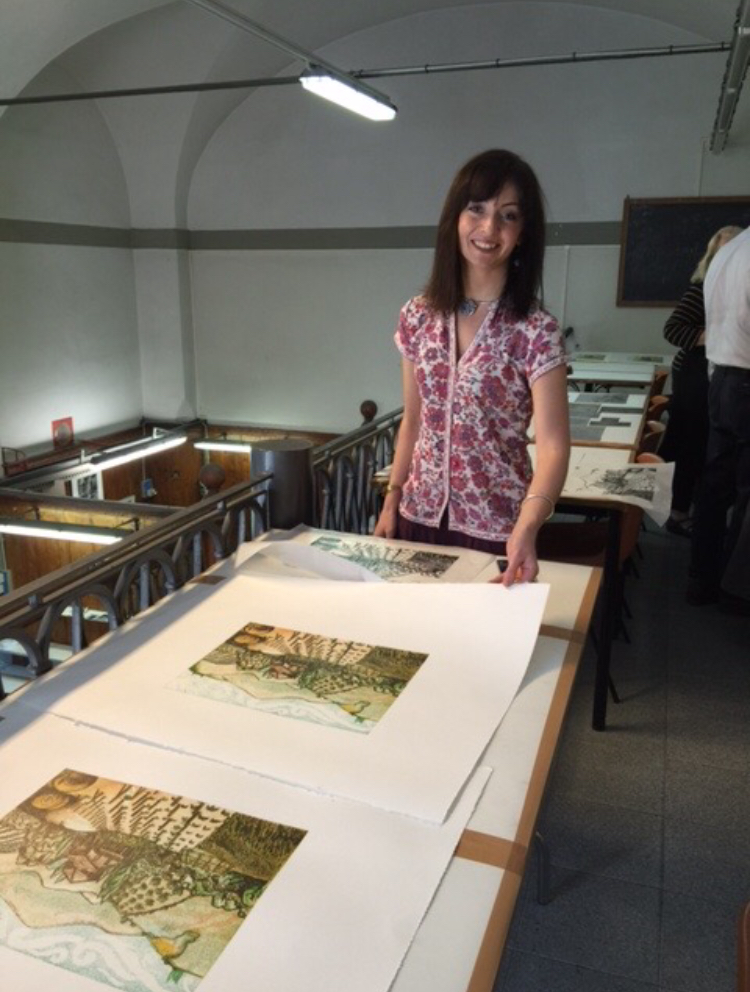 Collagraphs, lino prints, waterless lithography, photpolymer prints, and etching.